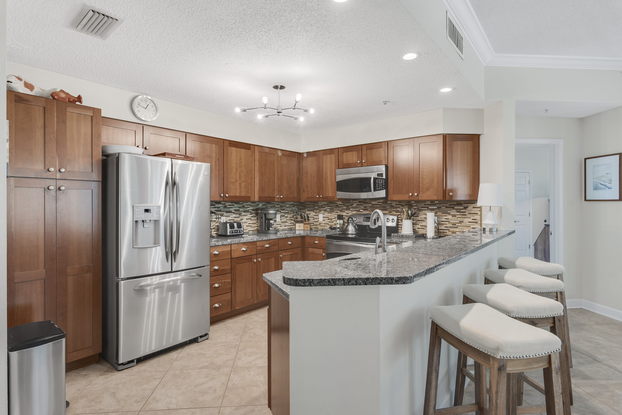🍳 Fully stocked kitchen (stainless + granite)