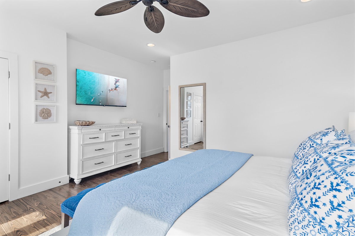 - Primary Bedroom: King Bed, Private Bathroom with Shower and Tub