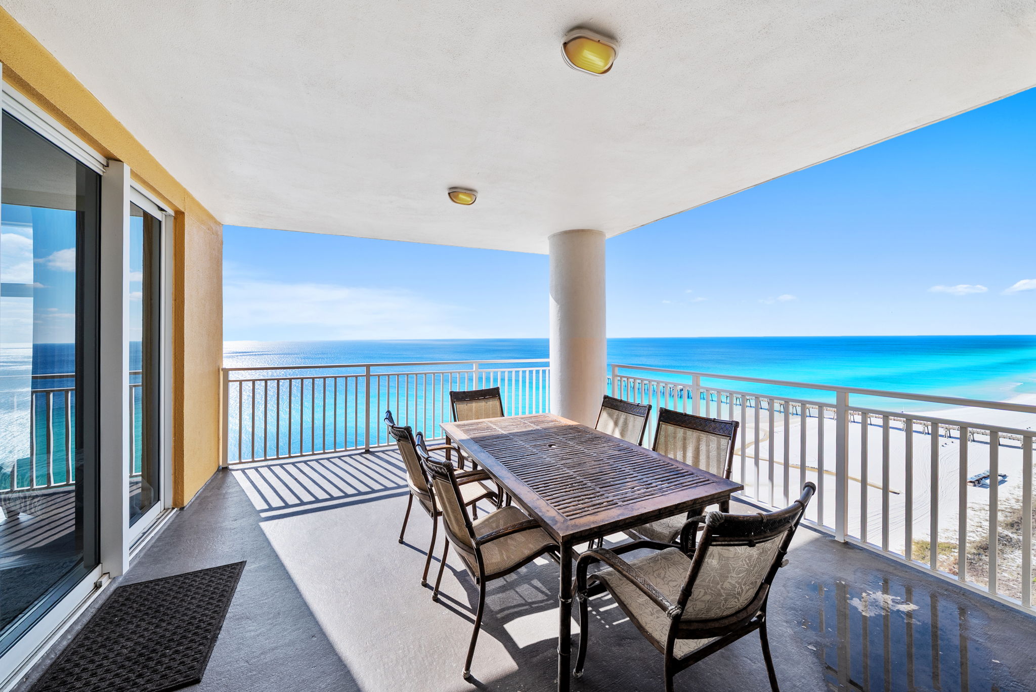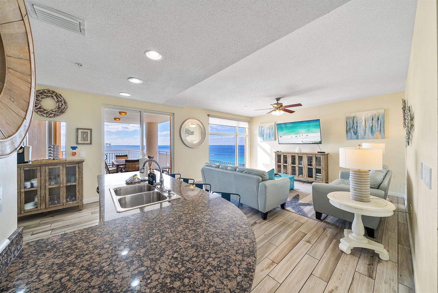 • Floor-to-ceiling windows with sweeping Gulf + sunset views