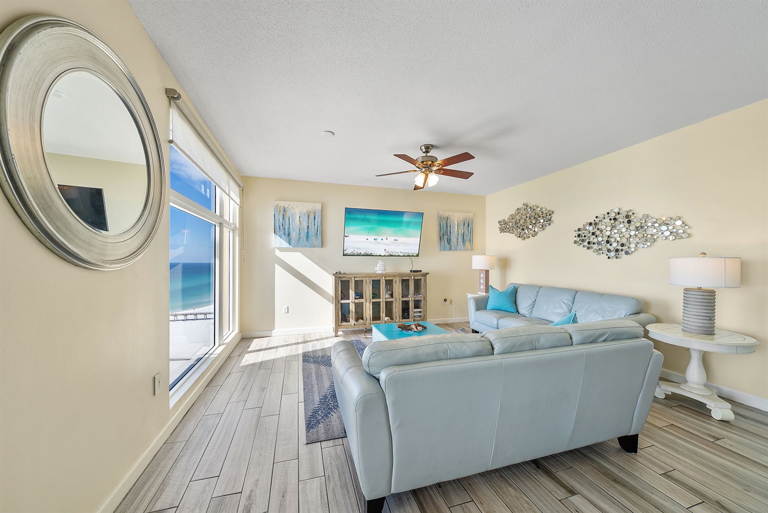 Experience stunning 17th-floor views in this bright and airy 2BR condo designed for comfort and relaxation. Perfect for families and small groups, the open layout, natural light, and floor-to-ceiling windows bring the coast right to your living room. Step onto the oversized balcony for uninterrupted sunsets over the Gulf and the pier.