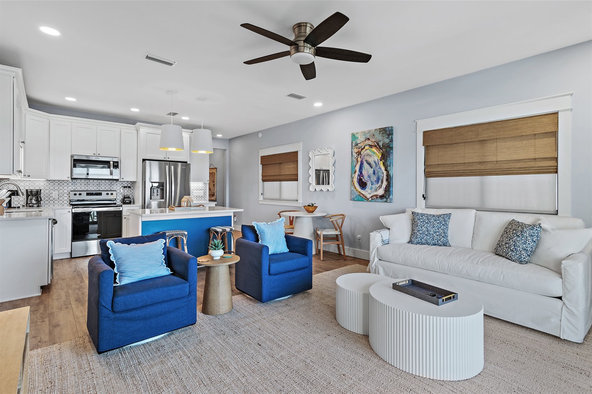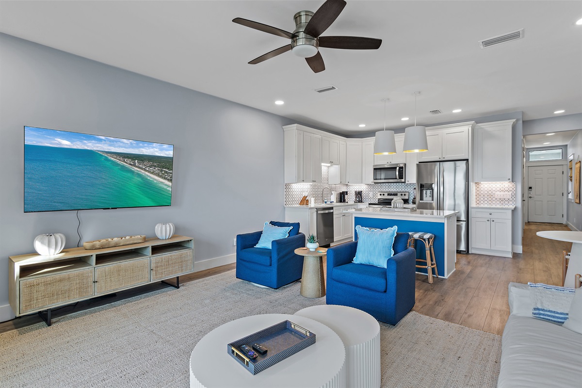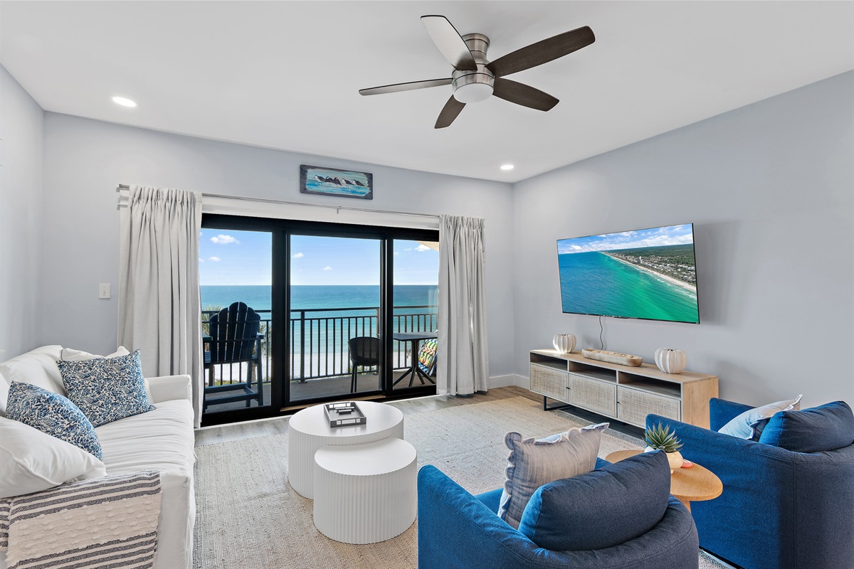 Welcome to Seaview Palms Oasis, your modern coastal getaway just moments from the turquoise waves and sugar-white sands of 30A. This stylish condo blends comfort and convenience, offering a relaxing king bedroom, cozy bunk beds, and bright living spaces perfect for families or groups.